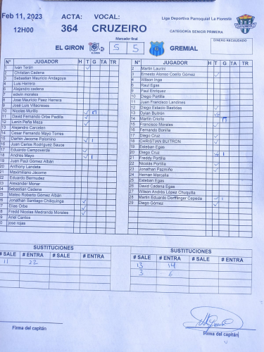 | Gol recibido Iván. Terán (01) | 5 | ||||