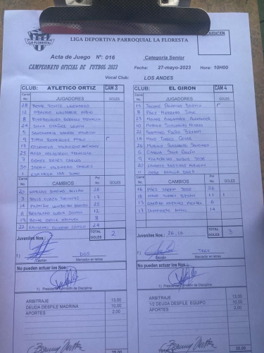| EL GIRÓN | 3 : 2 | Atlético Ortiz |