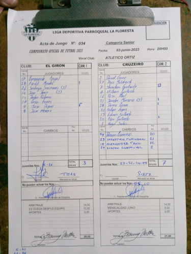 | EL GIRÓN | 3 : 7 | Cruzeiro |