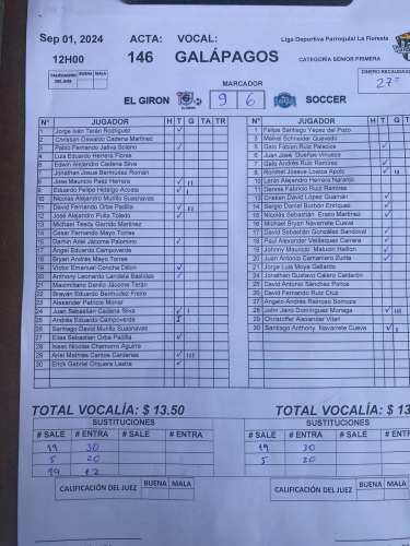 | EL GIRÓN | 4 : 2 | Conquistadores |