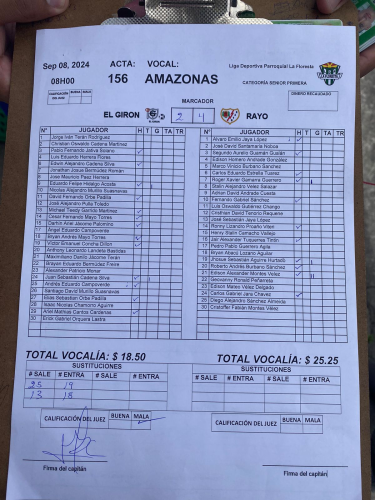 | EL GIRÓN | 4 : 2 | Conquistadores |