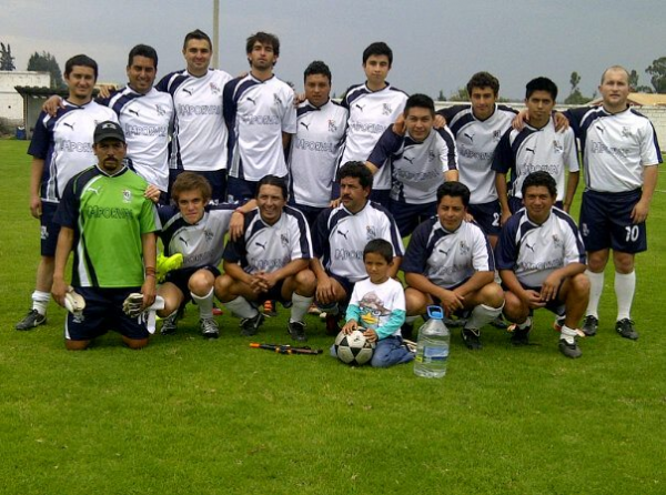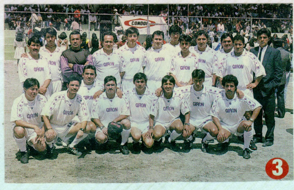 Por Ivan Terán Rodríguez escrito el 20 de abril de 2007 El 20 de abril de 1997, la empresa de repuestos automotrices DHELTYRE, con Tairo De la Torre y Luis Herrera a la cabeza, convienen tener un partido amistoso con su similar empresa AMRA; debido a que el número de empleados no cubre el mínimo para completar un equipo, y siendo la mayoría familiares, convocan a sobrinos, primos y amigos para jugar este partido. ARRIBA: Humberto Cruz(23) - Roberto Luna (18) - José Paez - Tairo De la Torre (06) - Jaime Herrera (09) - Miguel Cortez(19) - Richard Trujillo (14) - Marco Paez (07) - Fernando Dávalos (25) - Mario Terán (20) - Jorge Herrera (22) - Iván Terán (01). ABAJO: Carlos Gómez (16) - Pedro Flores (10) - Christian Cadena (02) - Kleber Herrera (17) - José Luis Cruz (05) - Juan Carlos Cruz (03) - Bayron Luna (07) - Luis Herrera (04) Es así como Pedro Flores, entrenador de fútbol y familiar cercano, ubica a las personas dentro del campo de juego, sobre la base de ver visto jugar a algunos de sus primos, tíos y amigos; y su intuición deportiva, determinando la mejor posición de cada uno de ellos en la cancha, muchos de ellos jugaban por primera vez.