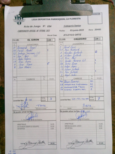 | EL GIRÓN | 3 : 7 | Cruzeiro |