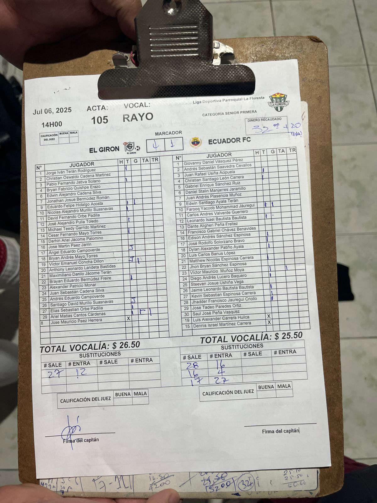 | EL GIRÓN | 4 : 4 | Ecuador |
